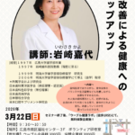 血流改善による健康へのステップアップ、岩崎嘉代氏を迎えてのセミナーです。